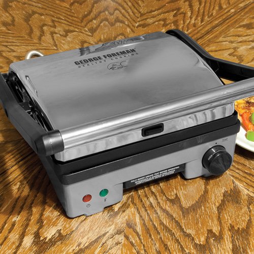 Let's face facts - a grilled Panini sandwich is delicious, but a lot of sandwich makers are tough to operate and clean. Not this one. The George Foreman grill lets you double your cooking surface and enjoy the versatility of three appliances in one. The grill has an 85 square inch cooking surface and sports the George Tough nonstick coating, allowing oil-free preparation. The large floating hinge lets you press a fully stuffed Panini or grill thick foods with ease. Or if you'd prefer, open the hinge flat to double your cooking surface for whole family meals. Best of all, it includes dishwasher-safe grill/Panini plates for healthy cooking from morning to night. And since this is a George Foreman product, it offers an adjustable angle so fat drains away from food as you cook, right into the dishwasher-safe drip tray.Amazon.com is usually a respectable organization offering exceptional client providers. Get ready to enjoy Free Shipping & Secure Shopping because besides they may get you this program on time but they're really active inside modernizing the position of your respective product shipping and delivery.